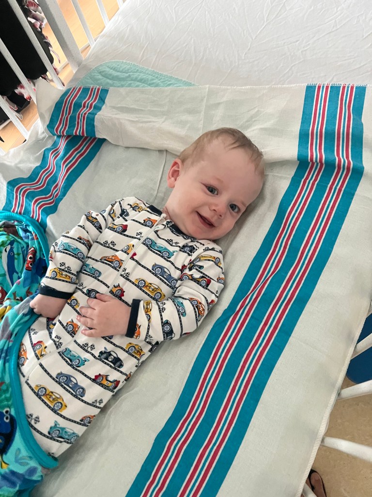 His ANC (absolute neutrophil count) was 0.12 on Friday morning, and our team required he be > 0.2 to be discharged. In hopes of discharging us before the weekend, our team ordered an additional CBC to be drawn Friday at 4pm, but his ANC was unchanged. We began to worry that maybe we’d be admitted through the weekend. However, Saturday around 2:30AM, Freddie woke up and was the most playful and happy that he’d been all week! He was chatting up a storm, reaching for us, giggling, and flirting with the nurses. After he was up for almost two hours, I had a [hopeful] feeling that a jump in his counts was the reason for his playful mood. A few hours later, his morning labs revealed an ANC of 0.24, which punched our ticket home!