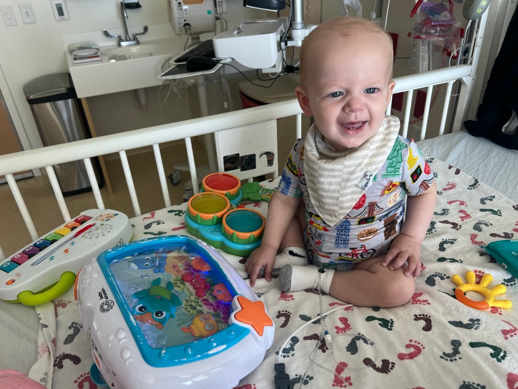 Freddie began cycle 4 of chemoimmunotherapy on September 4th. This cycle consisted of three chemotherapy drugs (vincristine + doxorubicin + cyclophosphamide) on days 1-2 and his usual immunotherapy drug (dinutuximab) on days 2-5. Freddie really surprised us all during the infusions and tolerated them SO well! The dinutuximab is infused over 14-ish hours and Freddie remains on a morphine drip while it’s running to help control pain. The morphine usually sedates him and he sleeps the majority of the week, but this time around he was up and playing on days 4-5!